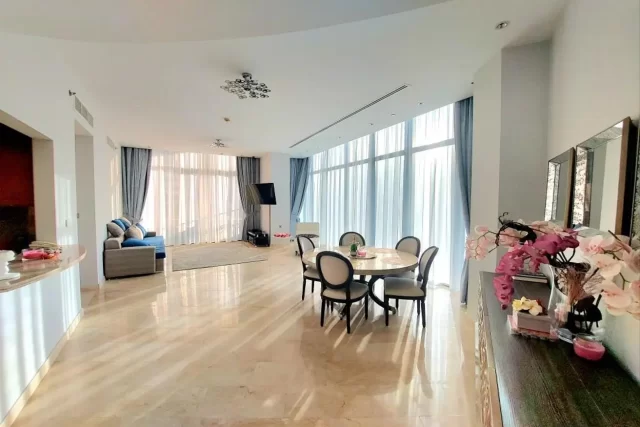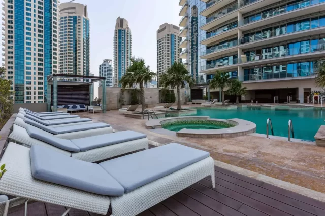 Located so good, between Dubai Marina and JBR, opposite Le Royal Meridian Hotel, with walking distance to access to the beach, with amazing and large size of living space, big terrace and floor direct pool access.